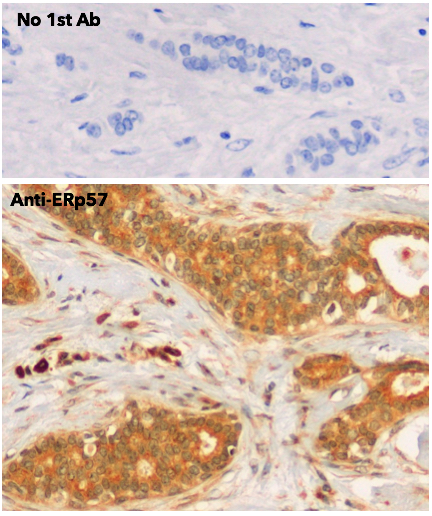 IHC of human breast carcinoma using anti-Rab1b antibody and FFPE tissue after heat-induced antigen retrieval; Anti-Rab1b Ab at 1:750/DAB detection;