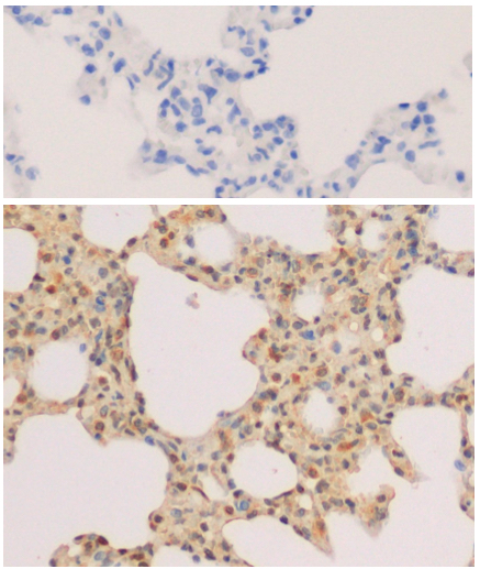 IHC of rat lung using anti-Rab1b antibody and FFPE tissue after heat-induced antigen retrieval; Anti-Rab1b Ab at 1:750/DAB detection;
