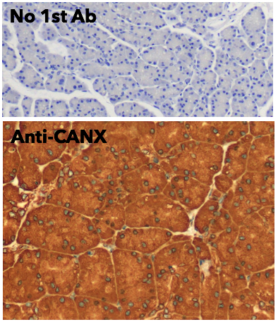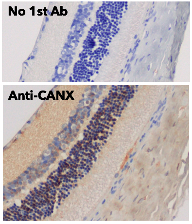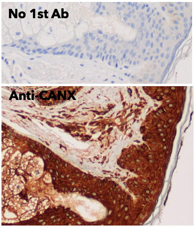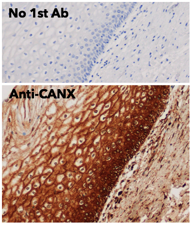 Purified recombinant peptide within residues 550 aa to the C-terminus of human CANX produced in E. coli.