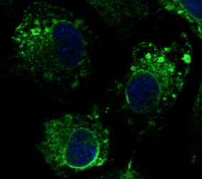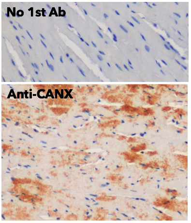 Goat polyclonal to CANX (Calnexin) - endoplasmic reticulum (ER) membrane marker. CANX is a member of the Calnexin family of molecular chaperones. This protein is a calcium-binding, ER-associated protein that interacts transiently with newly synthesized N-linked glycoproteins, facilitating protein folding and assembly. It may also play a central role in the quality control of protein folding by retaining incorrectly folded protein subunits within the ER for degradation.