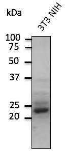 Anti-Rab9a Ab at 1/500 dilution; 3T3 NIH cell line lysates at 100 µg per lane; rabbit polyclonal to goat IgG (HRP) at 1/10,000 dilution;