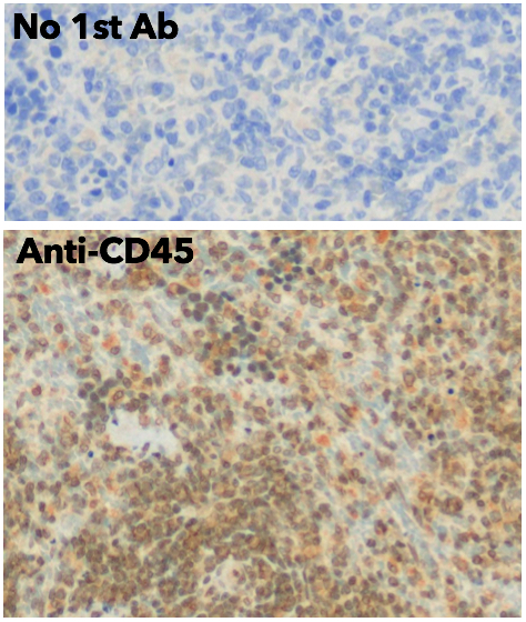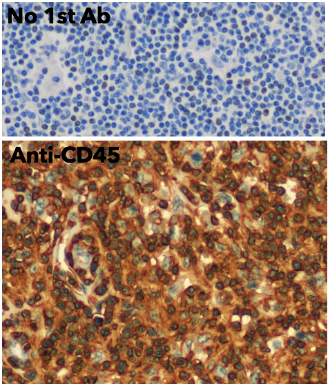 Goat polyclonal antibody to CD45. It is a 180-220 kDa type I transmembrane glycoprotein and a member of the protein tyrosine phosphatase (PTP) family. This PTP contains an extracellular domain, a single transmembrane segment and two tandem intracytoplasmic catalytic domains, and thus is classified as a receptor type PTP. It is expressed in all hematopoietic cells, but highest on lymphocytes. PTPs are known to be signalling molecules that regulate a variety of cellular processes including cell growth, differentiation, mitosis, and oncogenic transformation. It has intrinsic tyrosine phosphatase activity and it is essential for T and B cell antigen receptor-mediated activation. It functions through either direct interaction with components of the antigen receptor complexes, or by activating various Src family kinases required for the antigen receptor signalling. CD45 also suppresses JAK kinases, and thus functions as a regulator of cytokine receptor signalling. The cross-linking of CD45 induces apoptosis in lymphocytes.