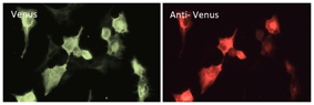 Immunofluorescence – anti-Venus Ab in 293HEK cells transfected with Venus protein at 1/50 dilution; cells were fixed with 4% of PFA;